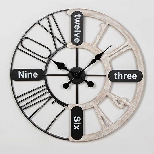 Wanduhr 1xAA, Ø 60 cm, schwarz/weiß mit Patina