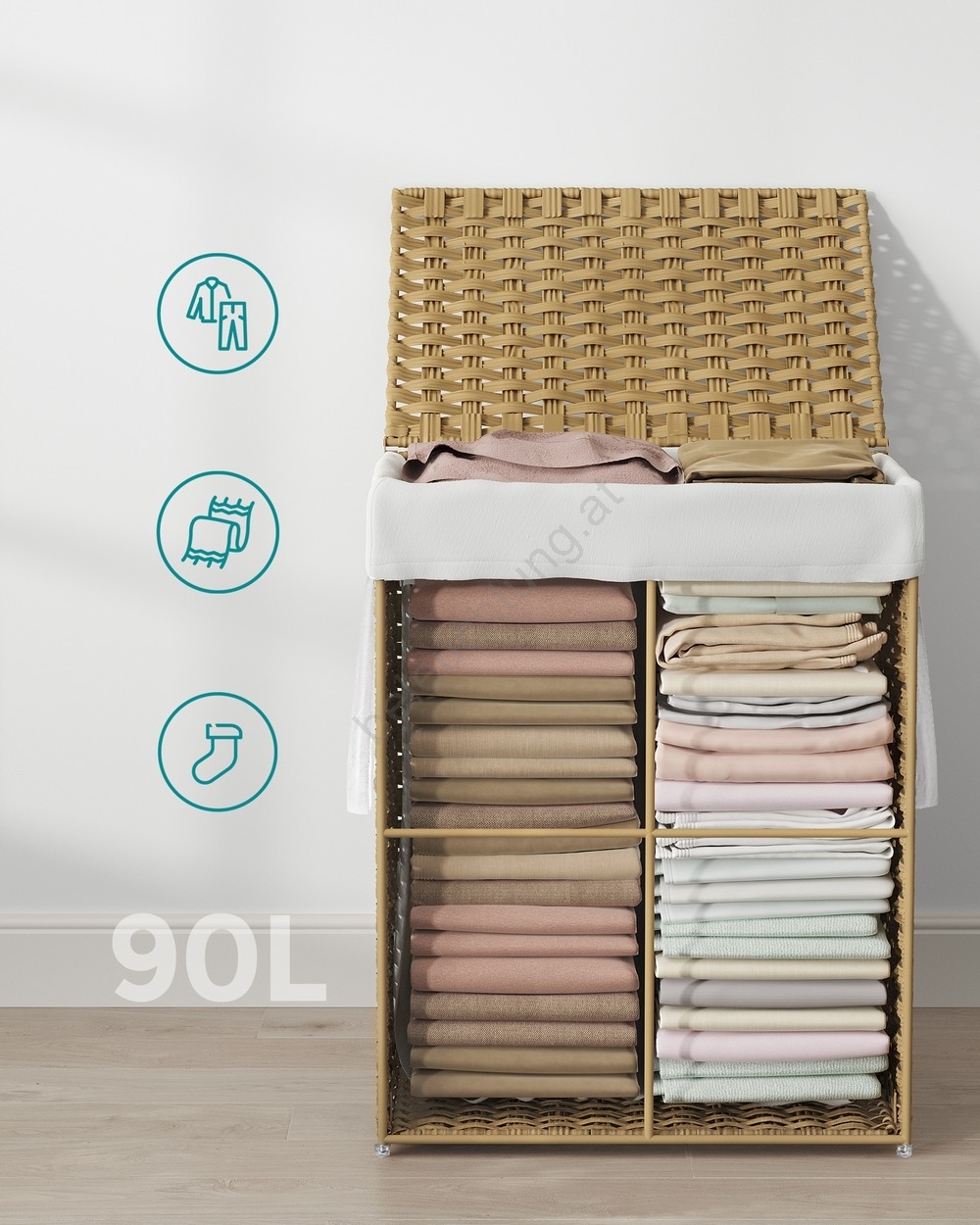 • Der Wäschekorb verfügt über ein großes Fassungsvermögen – 90 Liter für Ihre Kleidung, Handtücher und Bettwäsche.
