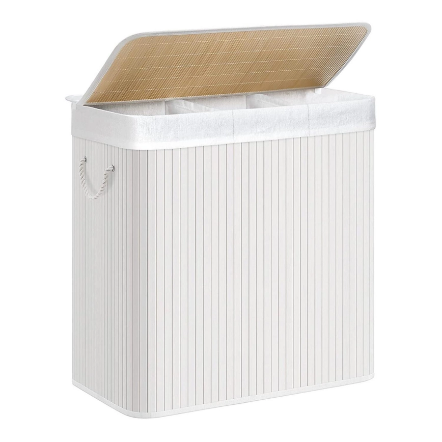 • Bringen Sie mit diesem stilvollen Wäschekorb im eleganten Design den Charme und die Robustheit von Bambus in Ihr Zuhause.