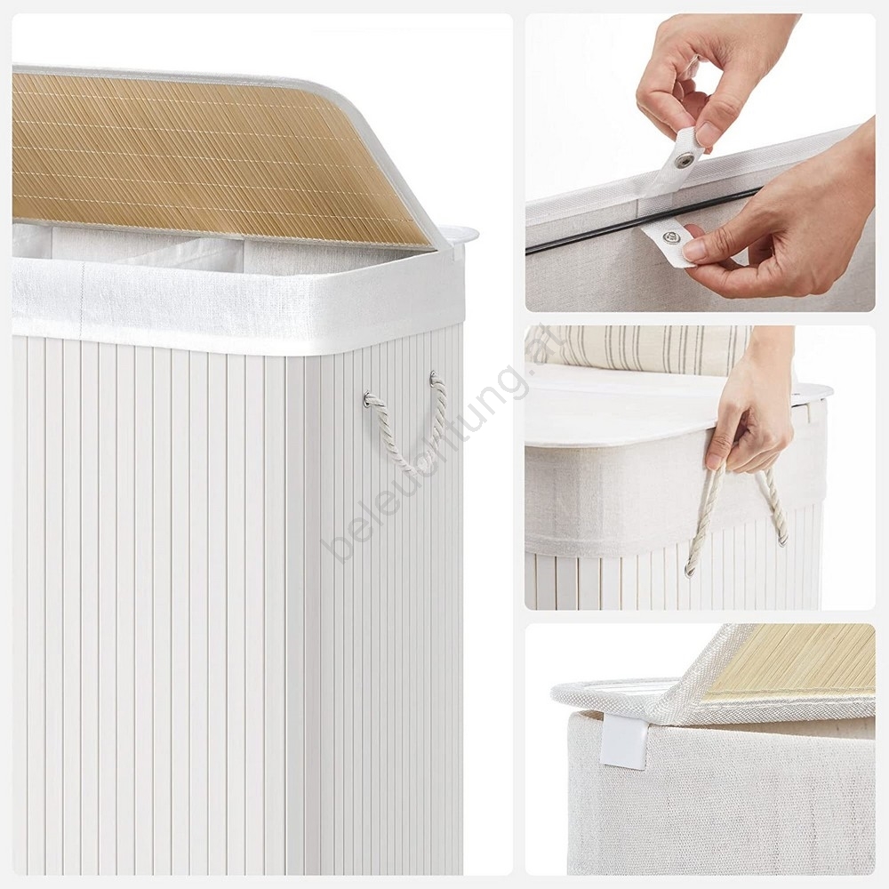 • Der Deckel lässt sich einhändig öffnen und schließen, sodass Sie die Wäsche schnell verbergen können; er verhindert Geruchsbildung und schützt die Wäsche vor Staub.