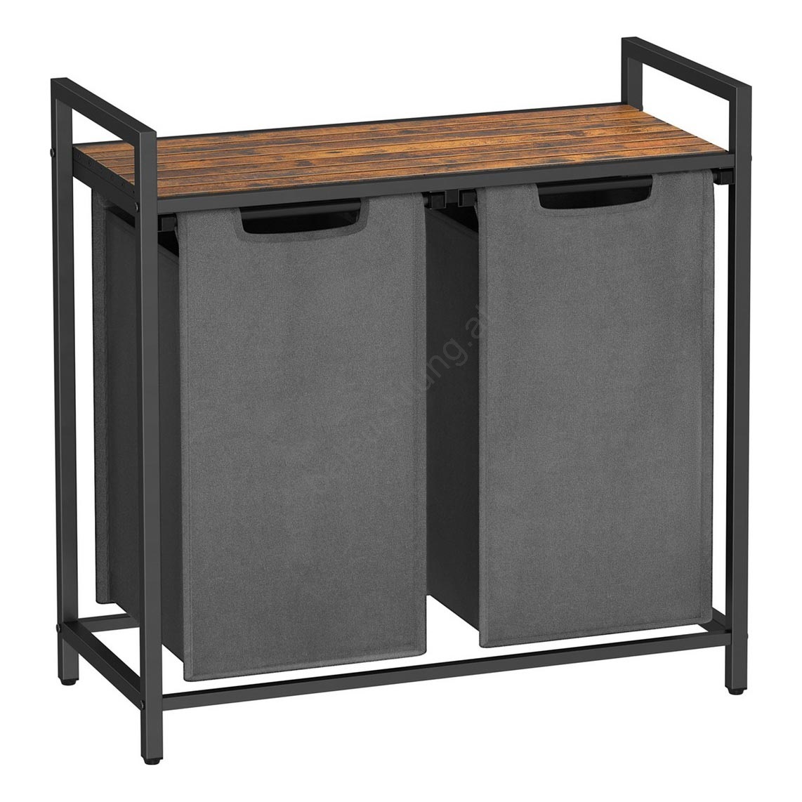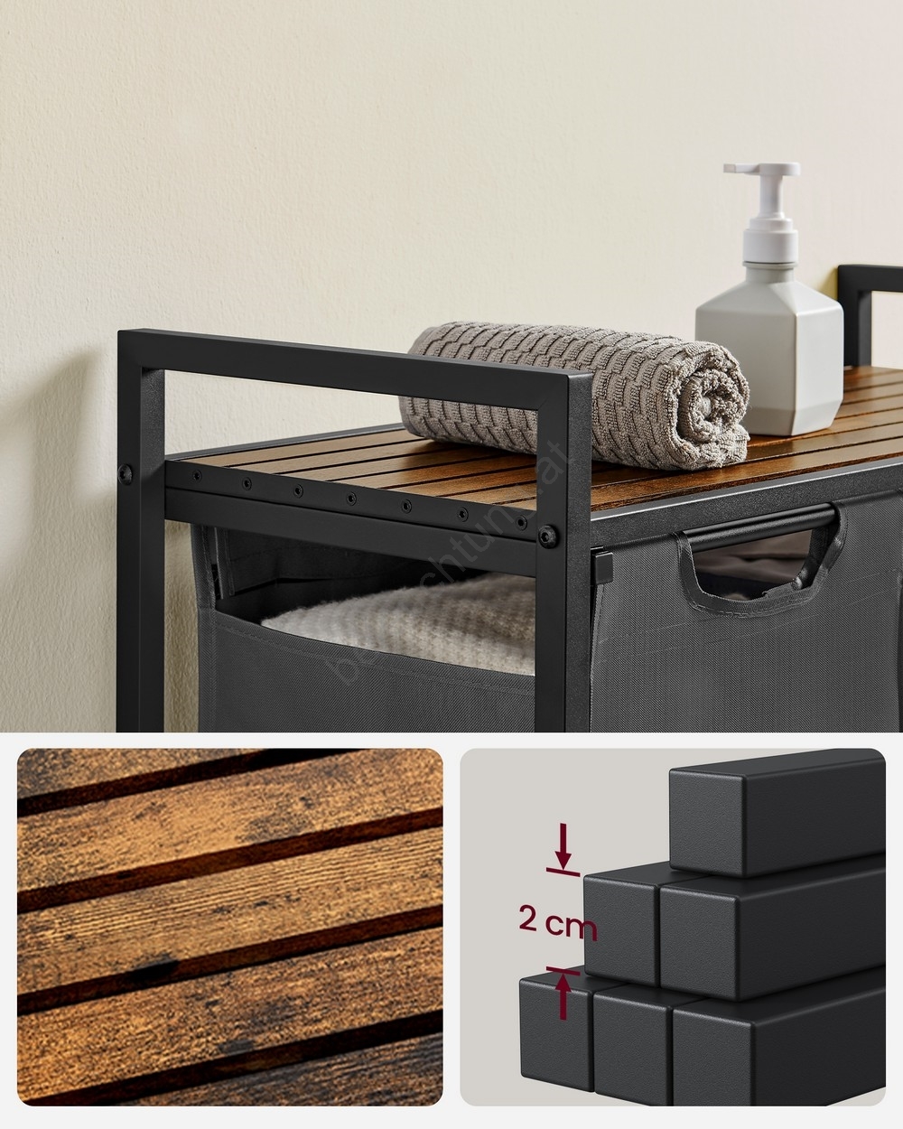 • 2 Stoffbeutel, 1 Ablage – Sortieren Sie Ihre Wäsche in zwei Stoffbeuteln (46 l pro Beutel) und stellen Sie Waschmittel, Weichspüler und weiteres auf die Ablage.