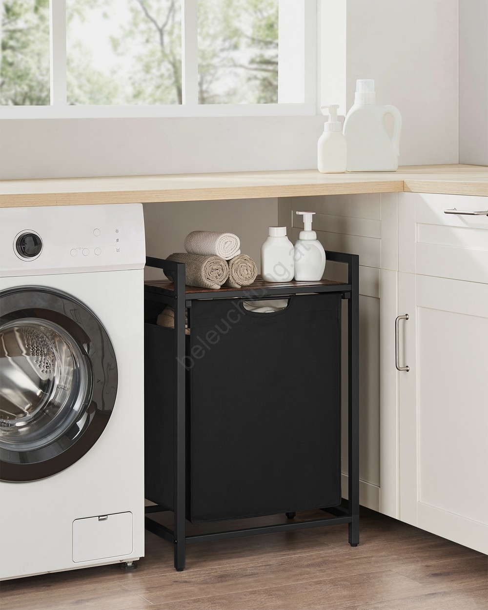 • 1 Beutel, 1 Ablage – Legen Sie Ihre Wäsche in den Stoffbeutel (65 l) und stellen Sie Waschmittel, Weichspüler und weitere Utensilien auf das Regal darüber.