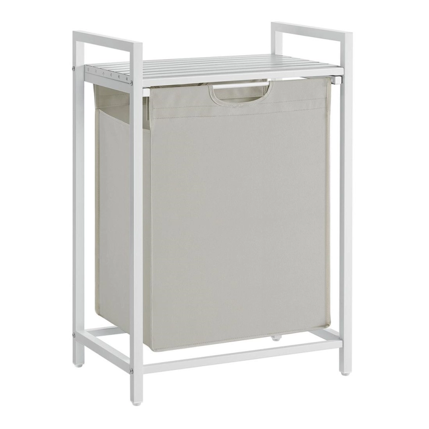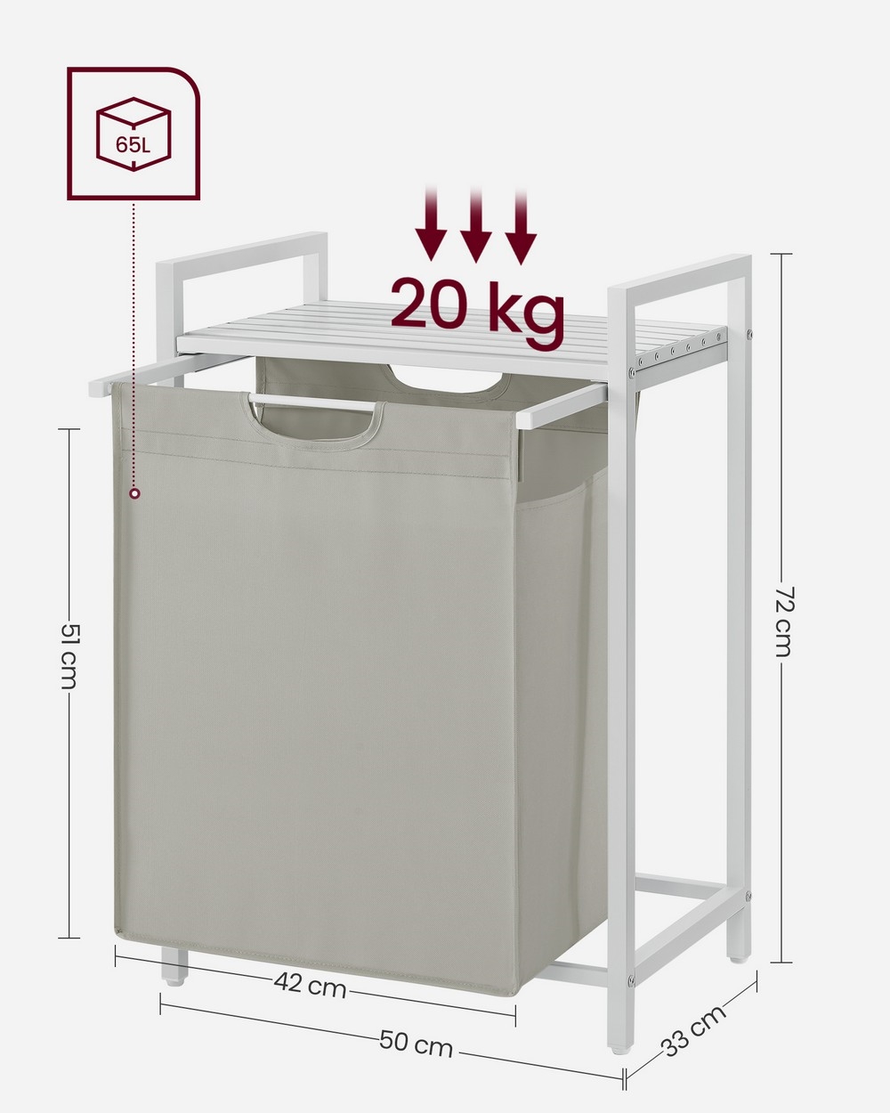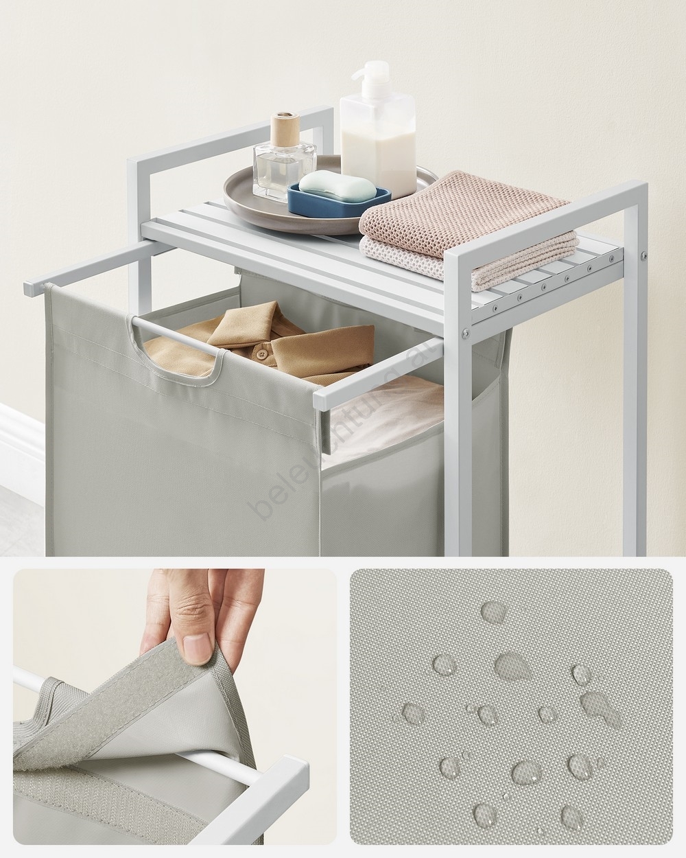 • 1 Beutel, 1 Ablage – Legen Sie Ihre Wäsche in den Wäschesack (65 l) und platzieren Sie Waschmittel, Weichspüler und weitere Utensilien auf dem darüberliegenden Fach.