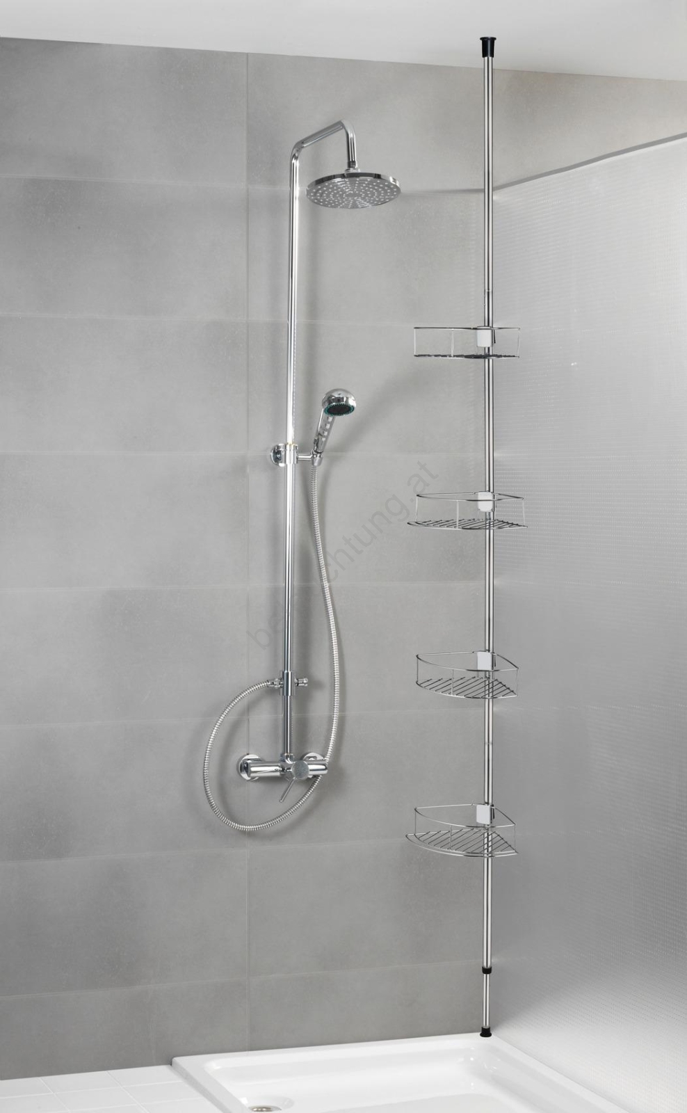 • Vier praktische Körbe für Shampoo, Duschgel, Seife und weitere Pflegeprodukte.