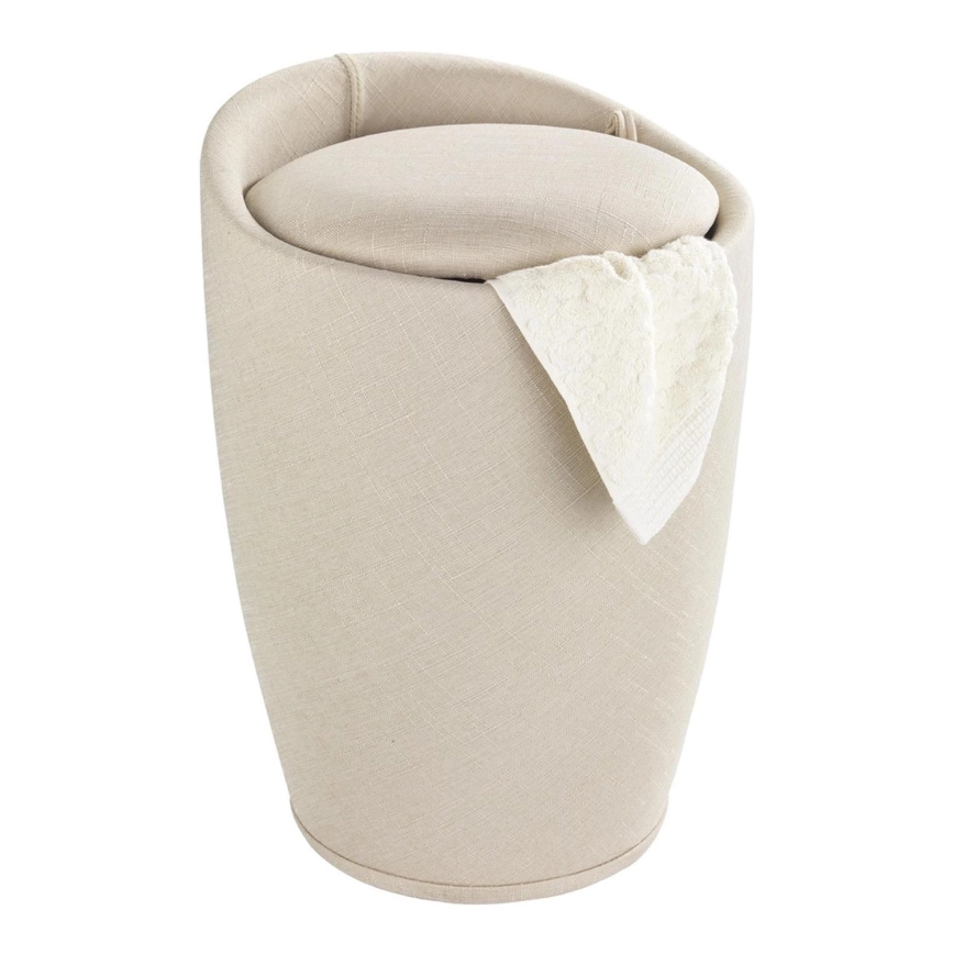 • Stilvoller Badezimmerhocker mit modernem Textilbezug in beiger Leinenoptik.
