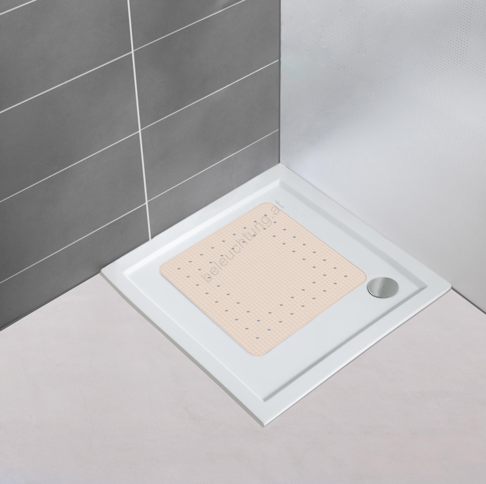 • Kompakte quadratische Form mit den Maßen 54 × 54 cm für gängige Duschwannen.