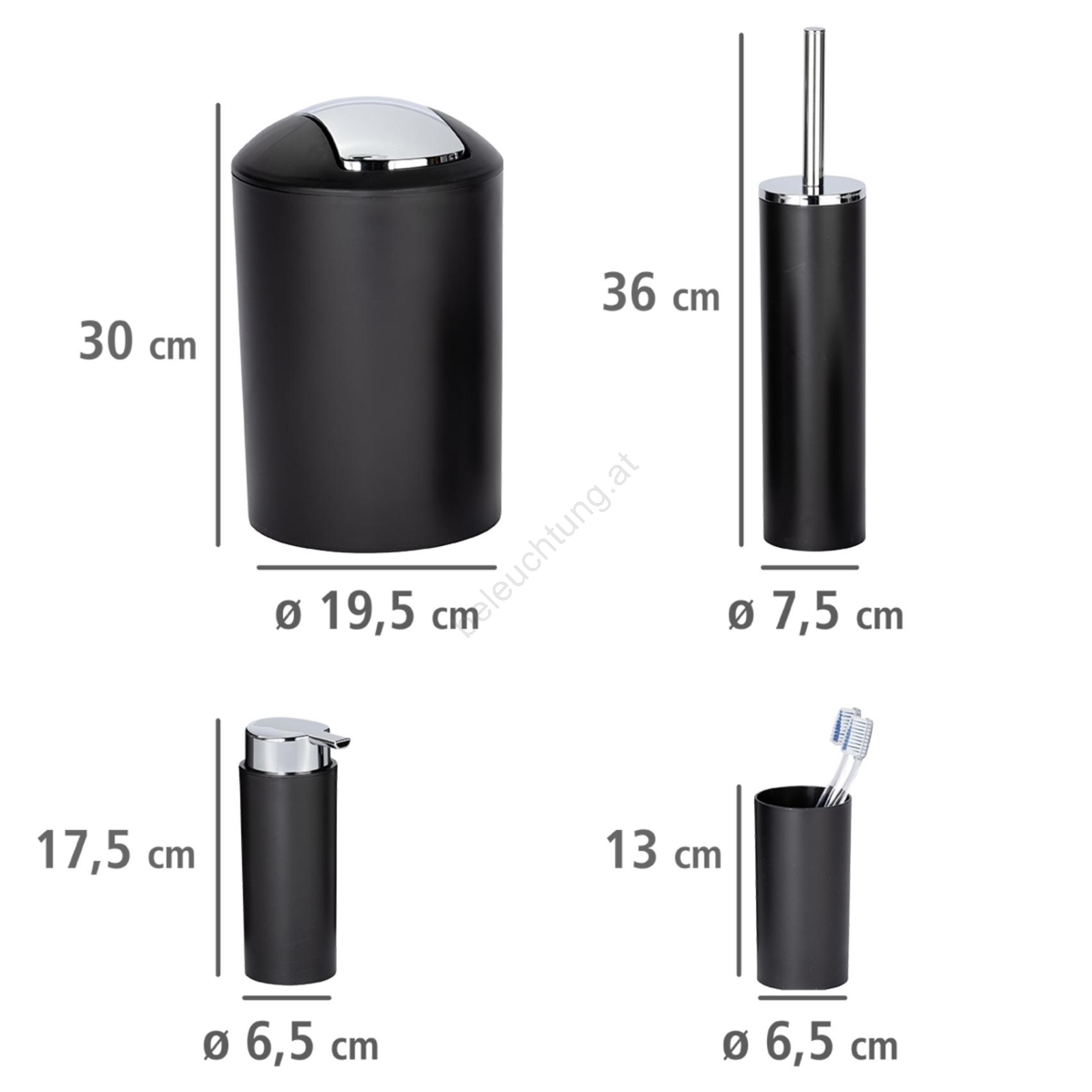 • Enthält Seifenspender, Zahnbürstenbecher, WC-Set und Kosmetikeimer.