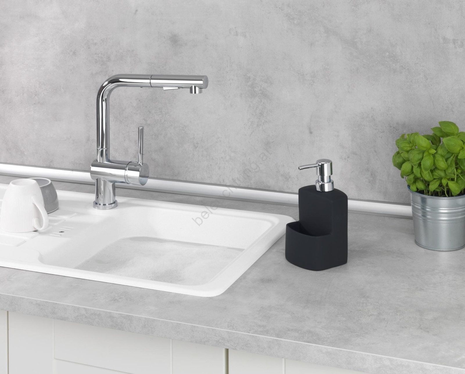 • Integrierter Stauraum für Schwamm oder Spülbürste.