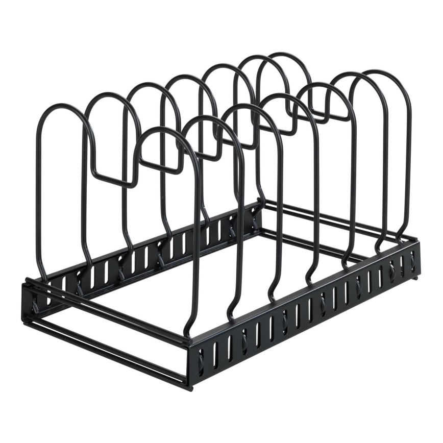 • Ermöglicht platzsparende und übersichtliche Aufbewahrung von Deckeln, Pfannen, Backblechen oder Schneidebrettern.