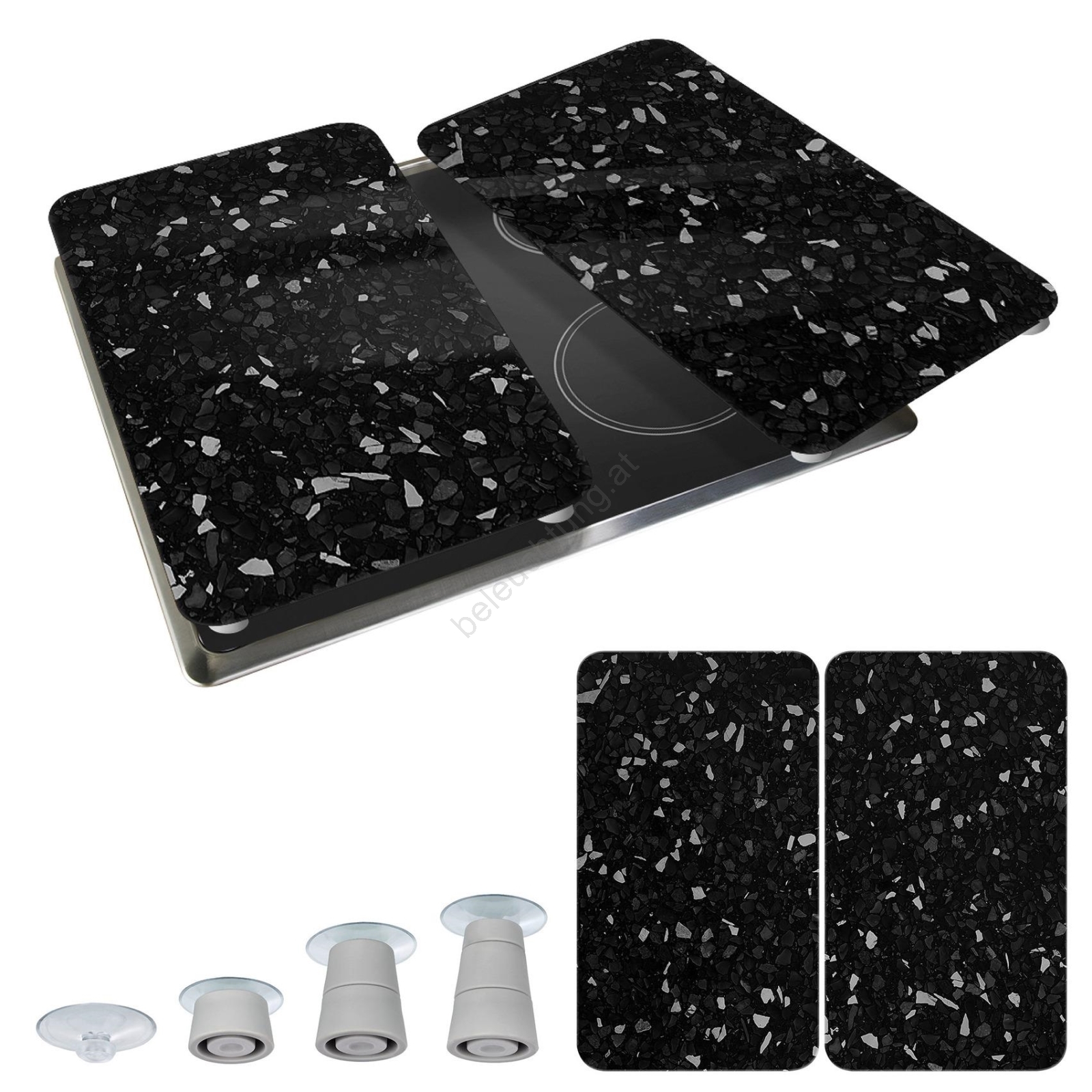• Universelle Abdeckplatten für Kochfelder aus widerstandsfähigem Sicherheitsglas im praktischen 2er-Set.