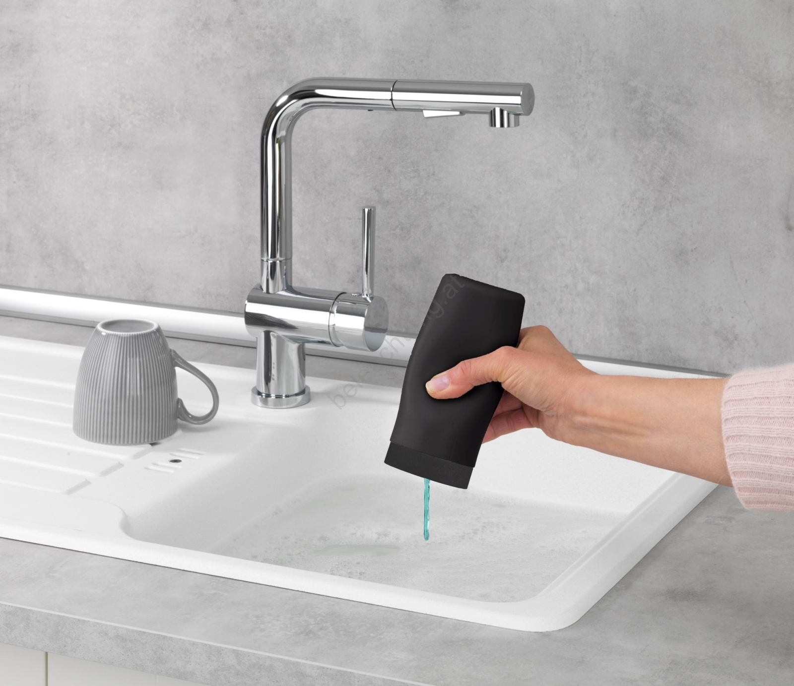 • Eleganter Spülmittelspender in modernem Schwarz.