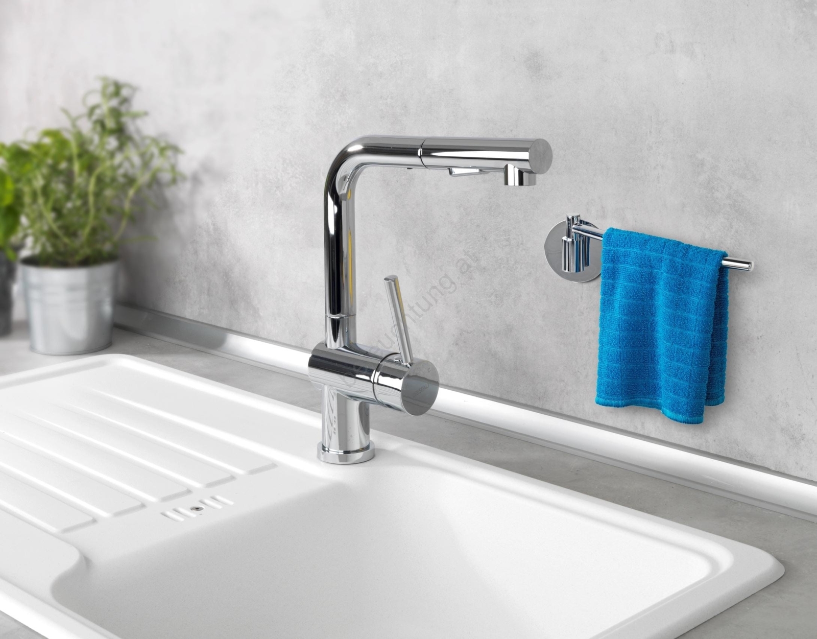 • Praktischer Küchentuchhalter für hygienisches und schnelles Trocknen.