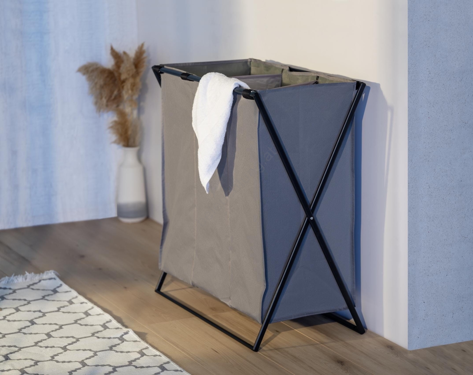 • Praktischer Wäschekorb mit drei separaten Fächern für einfaches Sortieren.