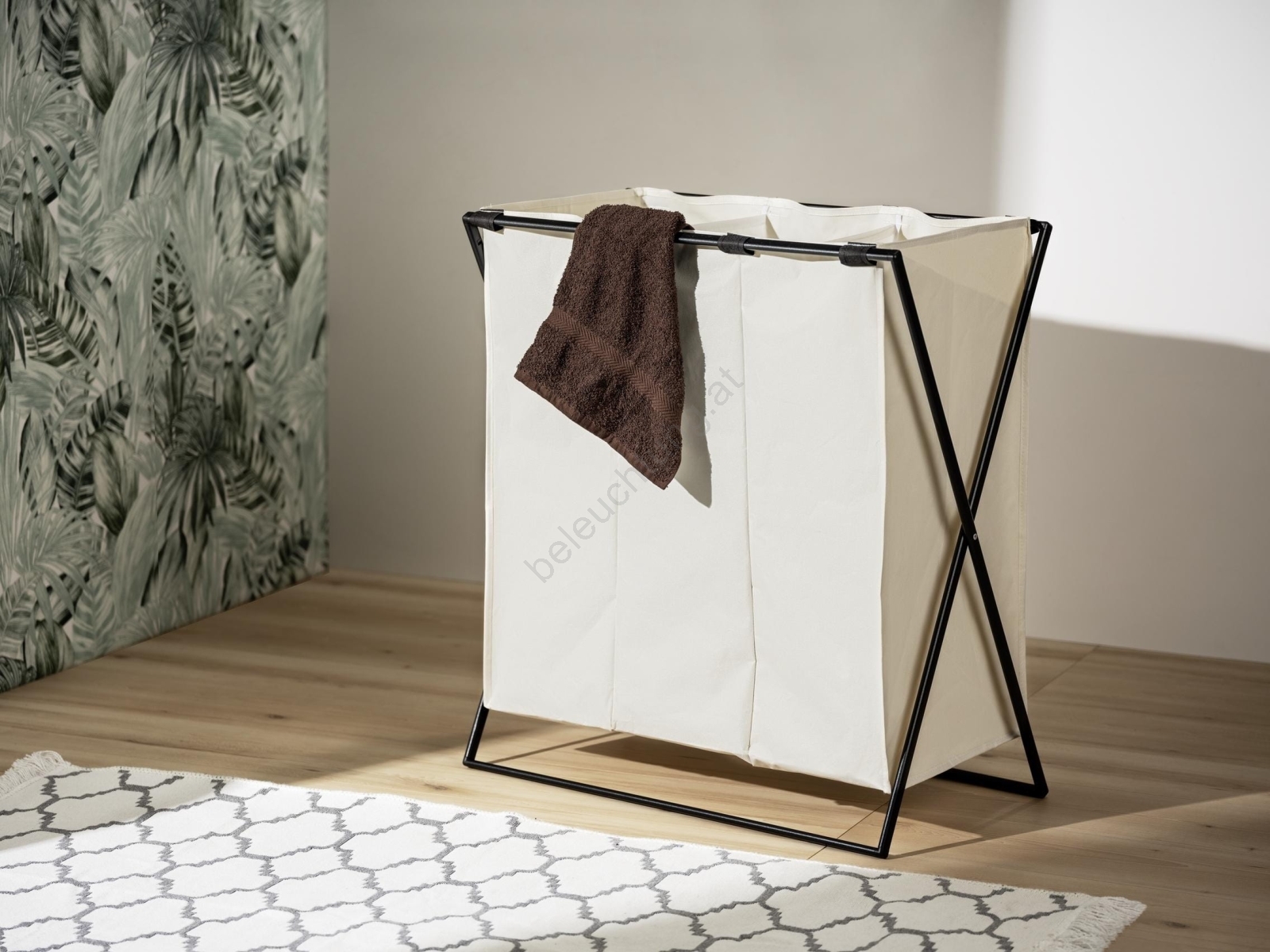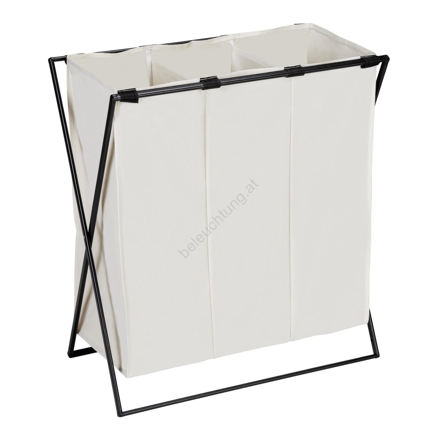 • Praktischer Wäschekorb mit drei getrennten Fächern für einfaches Sortieren.