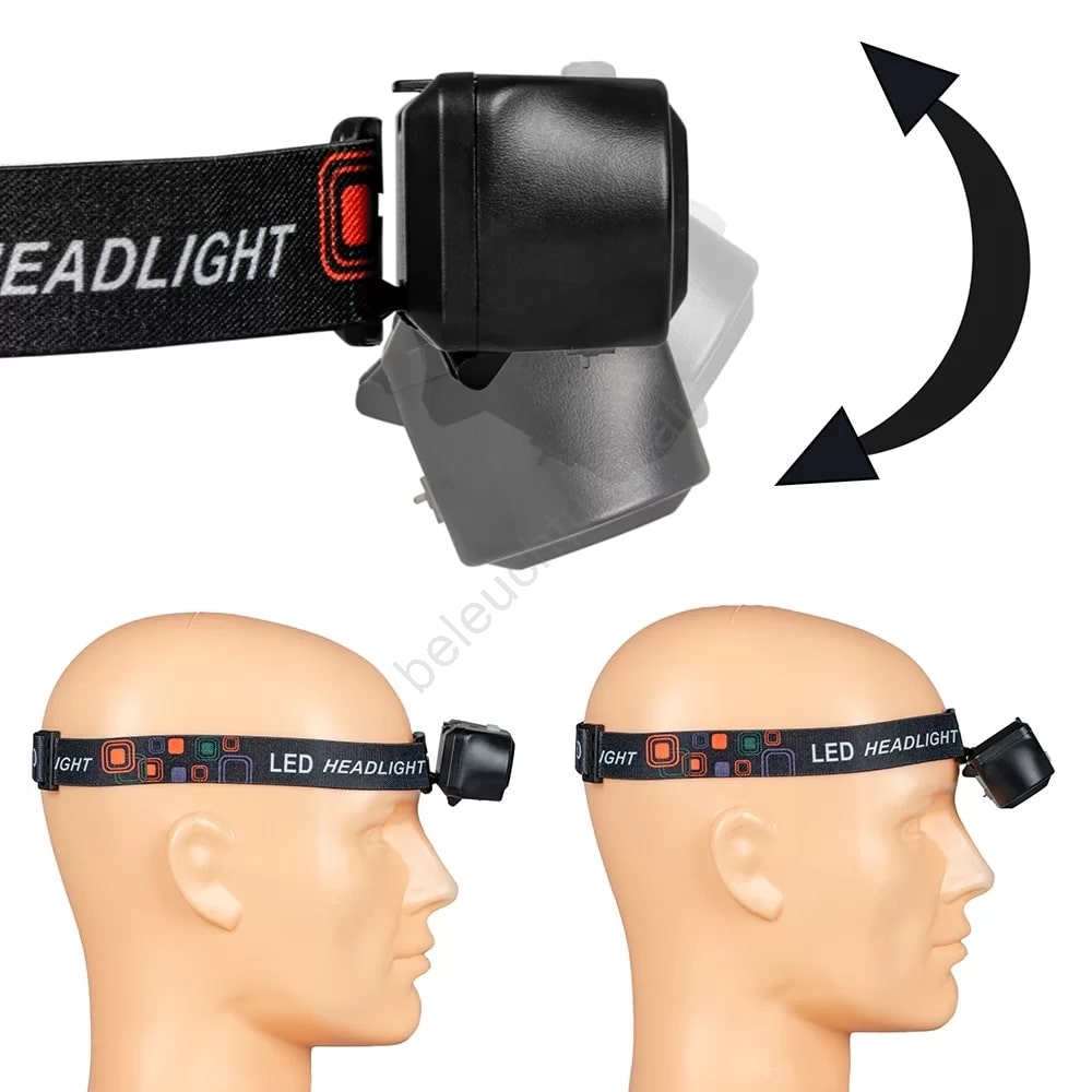 • LED wiederaufladbare Stirnlampe mit zwei unabhängigen LED-Lichtquellen.
