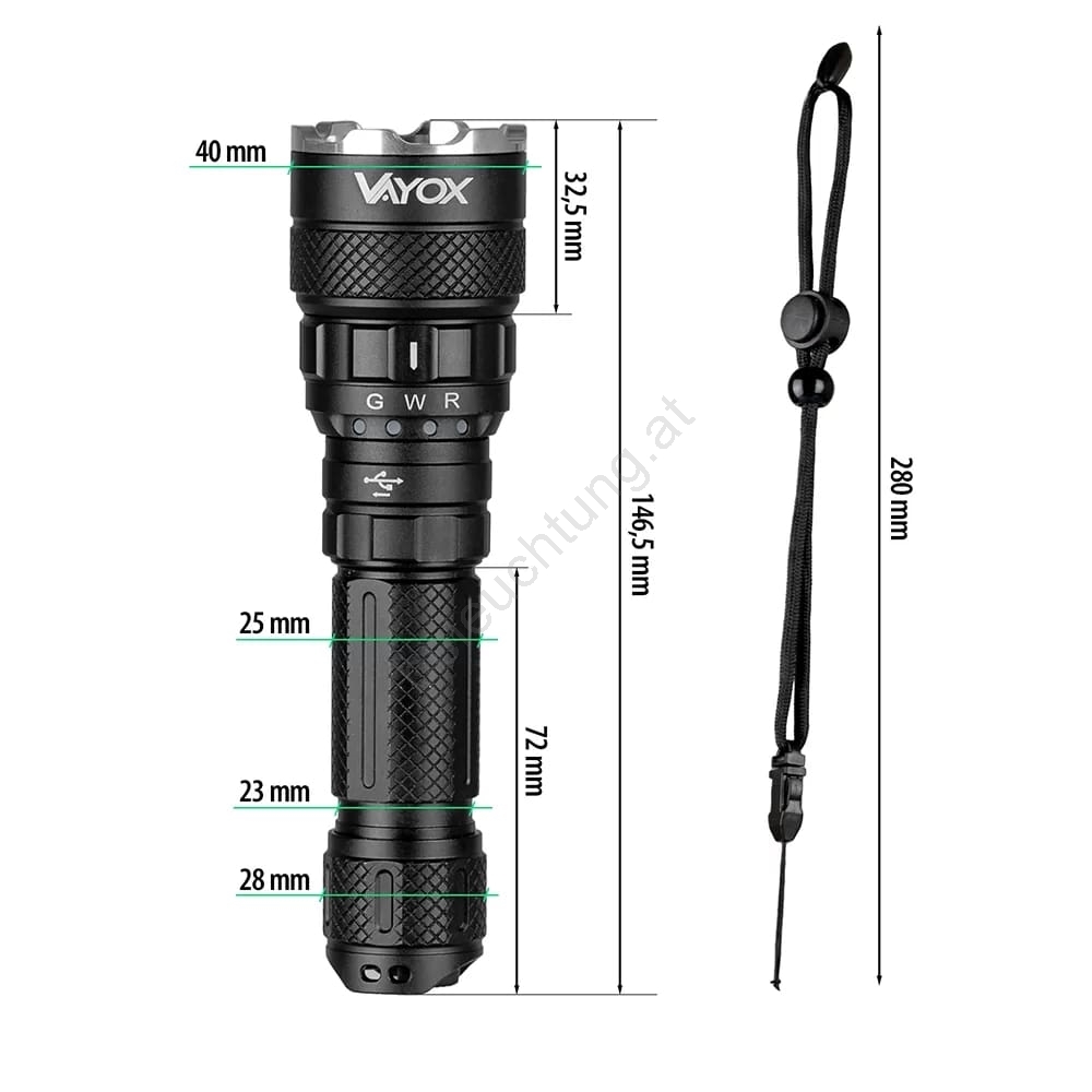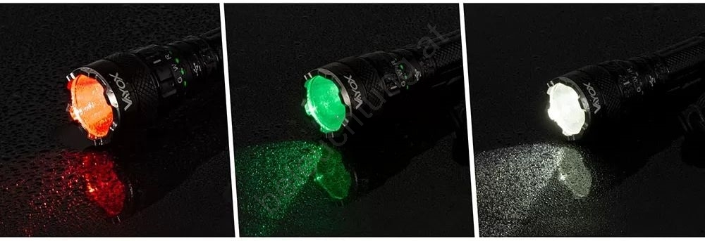 • Möglichkeit, mit weißem (6500K), rotem oder grünem Licht zu leuchten.