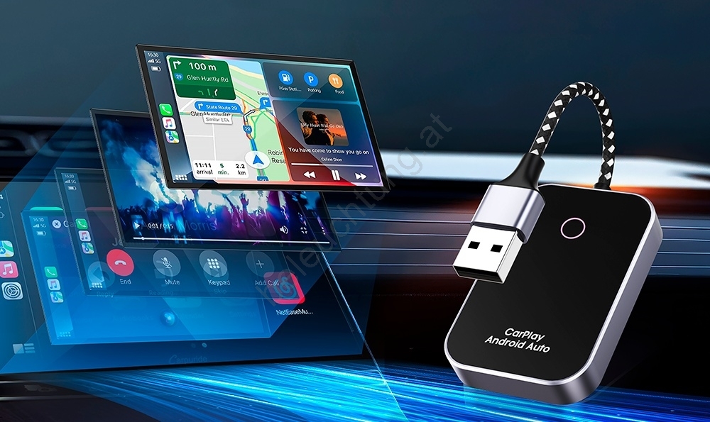 • Innovativer Adapter, der Ihnen kabellose Verbindung von CarPlay und Android Auto zu Ihrem Fahrzeug ermöglicht.