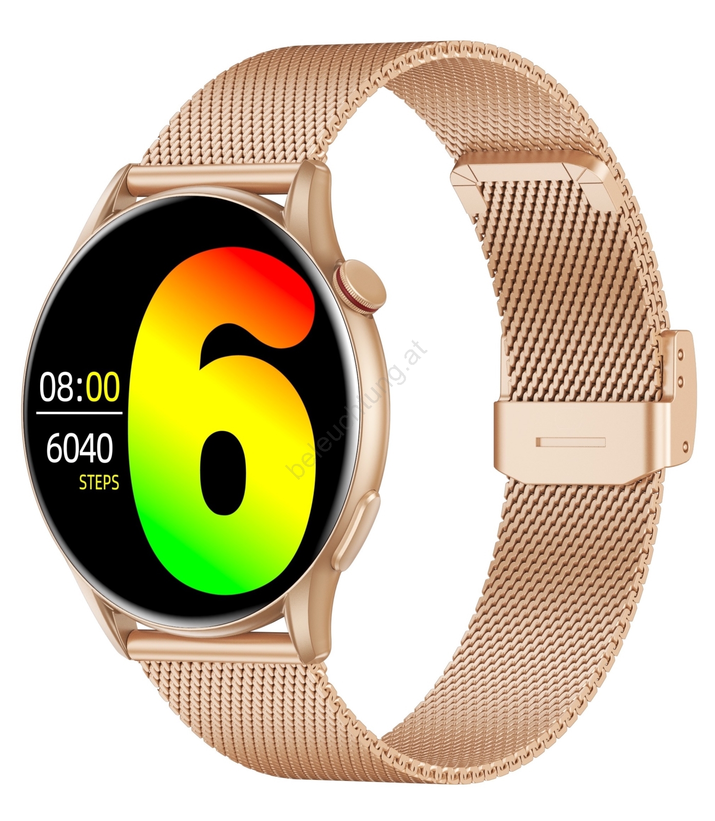• Lieferumfang: SmartWatch WG AirFlex Elegance, goldenes Armband, Armbandkürzungsset, rosa Silikonarmband, spezielles Ladekabel.