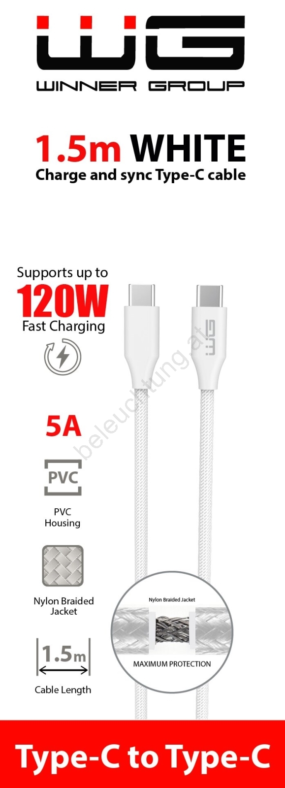 Winner Group - USB-Kabel USB-C / USB-C 120W 1,5m weiß