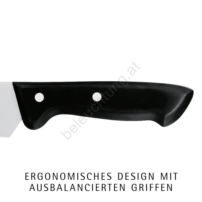 • Griffe aus Kunststoff mit Edelstahlnieten – ergonomisch geformt für komfortablen Halt.