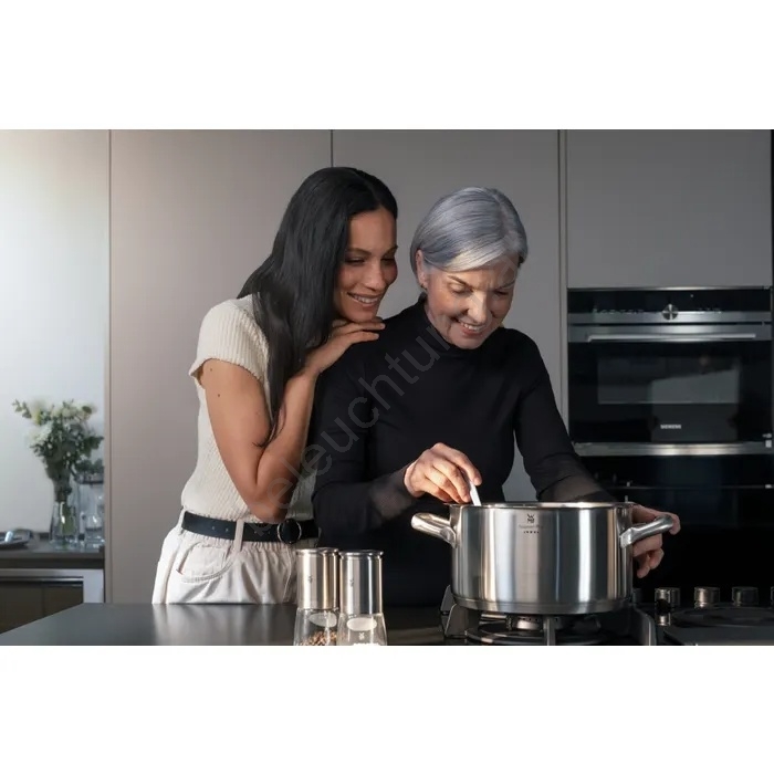 • Der Topf aus der Profi‑Serie Gourmet Plus ist ein robustes und hochfunktionales Kochgefäß, das für anspruchsvolles Kochen großer Mengen geeignet ist, etwa für Suppen, Gulasch, Brühen oder Pasta.